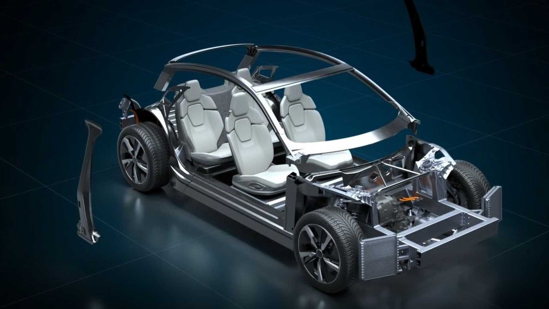 This architecture, dubbed EVX, sees the front and rear chassis structures mounted to the carbon composite case, meaning crash loads can be transferred via internal reinforcements to the integrated side sills. This results in improved torsional stiffness and reduces the reliance on the upper structure of the platform.