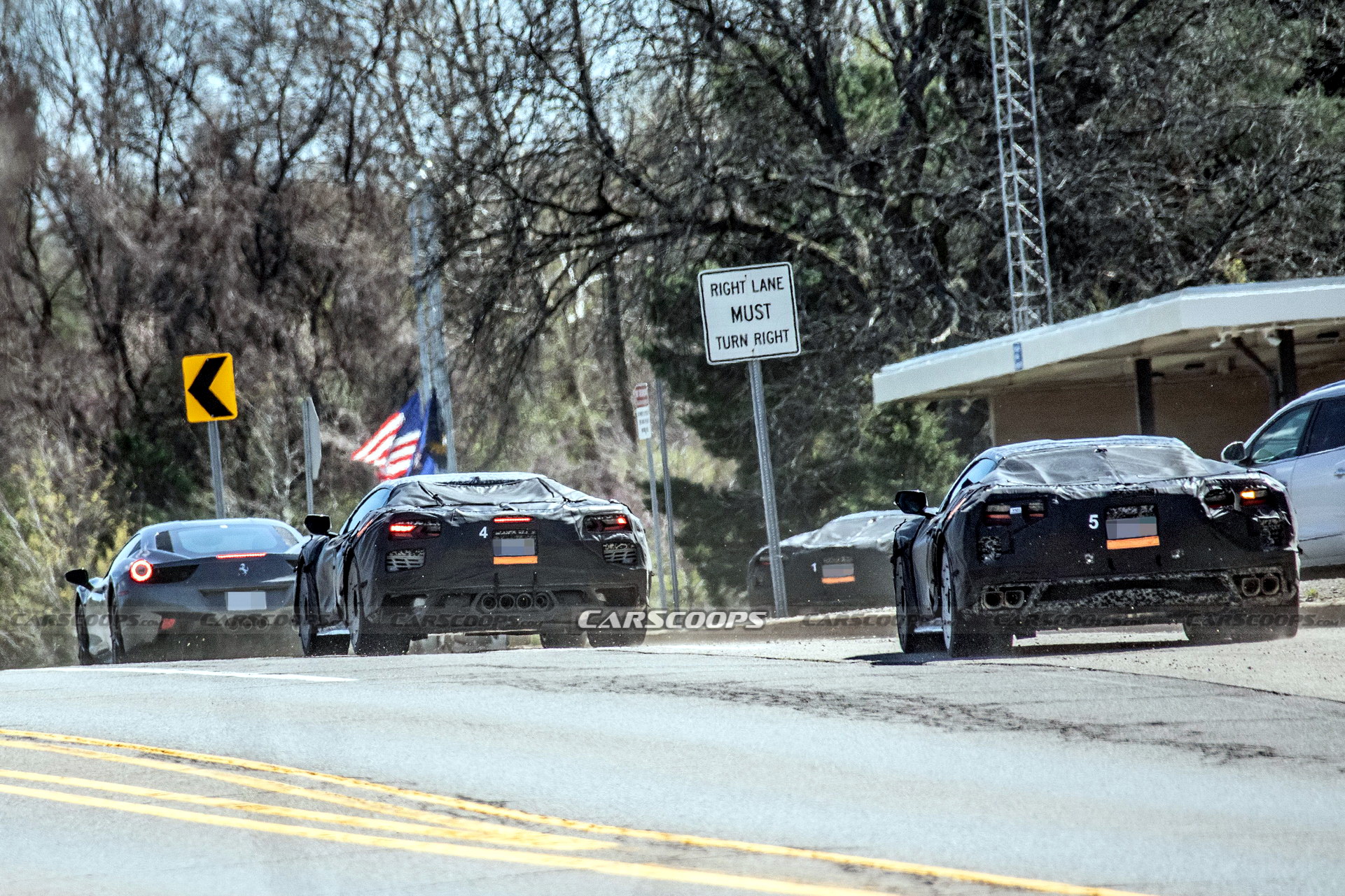 And it’s the ZR1 program that’s likely the reason for the presence of Porsche’s 911 GT2 at the Corvette team’s recent on-road tests. Corvette Blogger tracked the crew down to a Comfort Suites hotel (look, this is a Corvette we’re talking about) in Marietta, Ohio, where he spotted five disguised ‘Vettes, plus several stock C8s, the 911 GT2 and the 458.