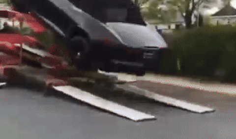 It’s hard to imagine the delivery of a new car going much worse than it does for the truck driver tasked with handing this F-type roadster over to its new owner.