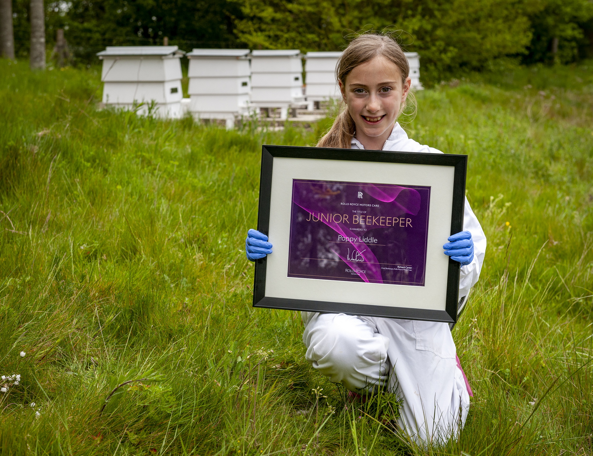 “We were moved to invite Poppy to visit the Goodwood Apiary after reading in the local paper about the theft of her beehive,” said Richard Carter, Chief Beekeeper at Rolls-Royce. “She is the first person ever to be made Junior Beekeeper at Rolls-Royce Motor Cars: we’ve all been incredibly impressed by her knowledge and love of bees, and we feel very lucky to have her on our team.”