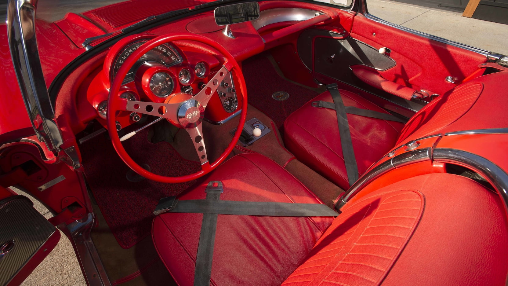 The first is one of only three 1958 Corvettes to win the NCRS Bowtie award and the only one painted in Signet Red to win the 5-star NCRS Bowtie award. It is a three-owner car and was in the care of its original owner until 2011. It has a touch over 36,000 miles (~58,000 km) on the odometer and is one of 765 painted in Signet Red with white accents. Mecum expects the car to sell for between $135,000 and $175,000.