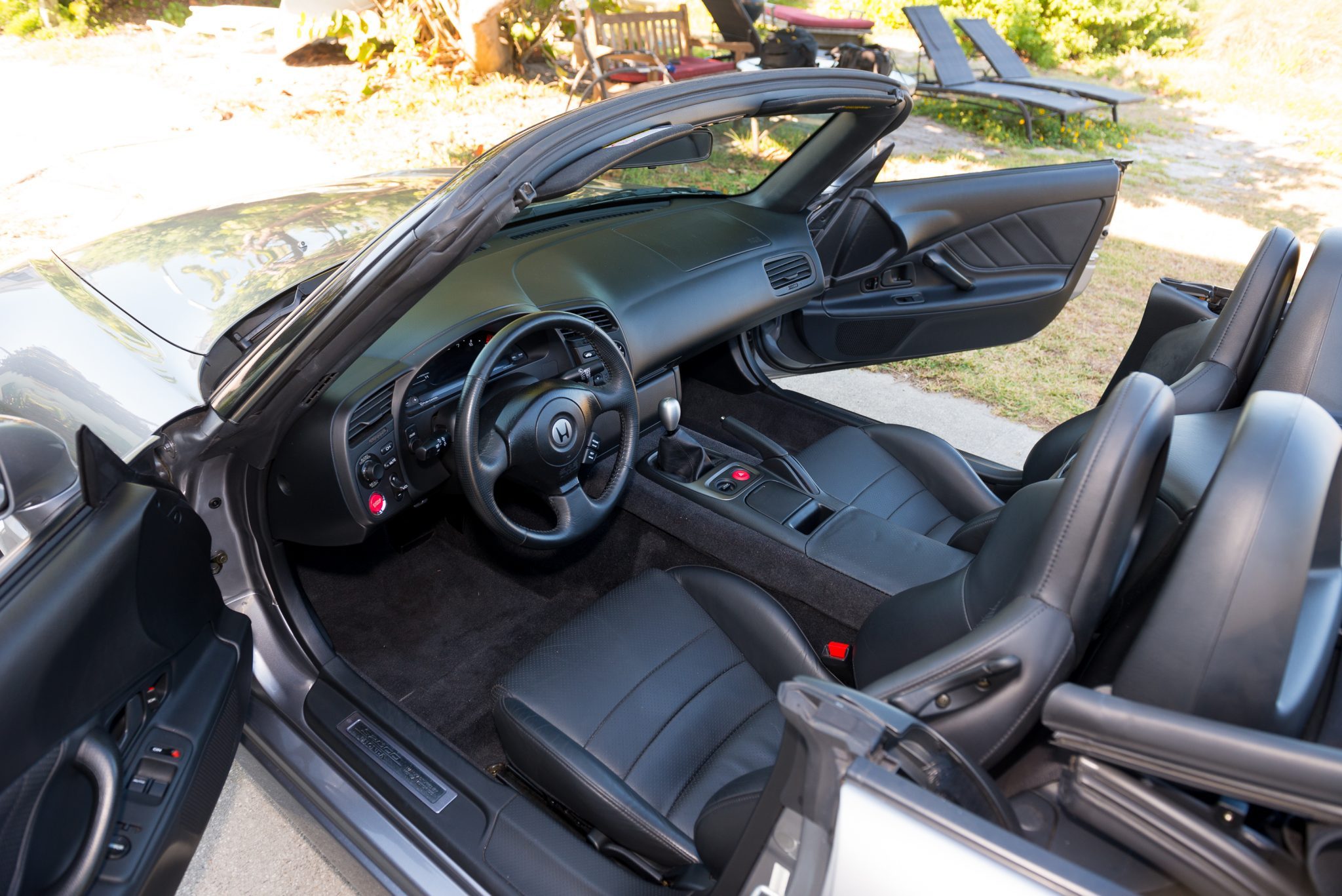 Adorning the exterior of the car is Silverstone Metallic paint, one of the most popular finishes offered for the S2000. The sports car also retains its original 16-inch wheels and has a set of Bridgestone Potenza S-02 tires. While the S2000 has barely been driven, the listing notes that there are some paint blemishes on the rear bumper cover, hood, and right fender.