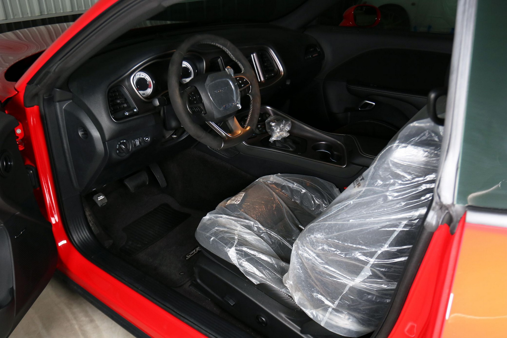 The result is cars like this 2018 Demon listed on Cars & Bids that still has the original protective plastic on its seats. Take a look at the odometer, and you’ll see it reads a mere 121 miles, meaning the only travel it’s ever seen was likely to and from a dealership. This car is number 1,136 of 3,000 and it comes with all relevant documentation, including the owner’s manuals, build letter, and original window sticker.