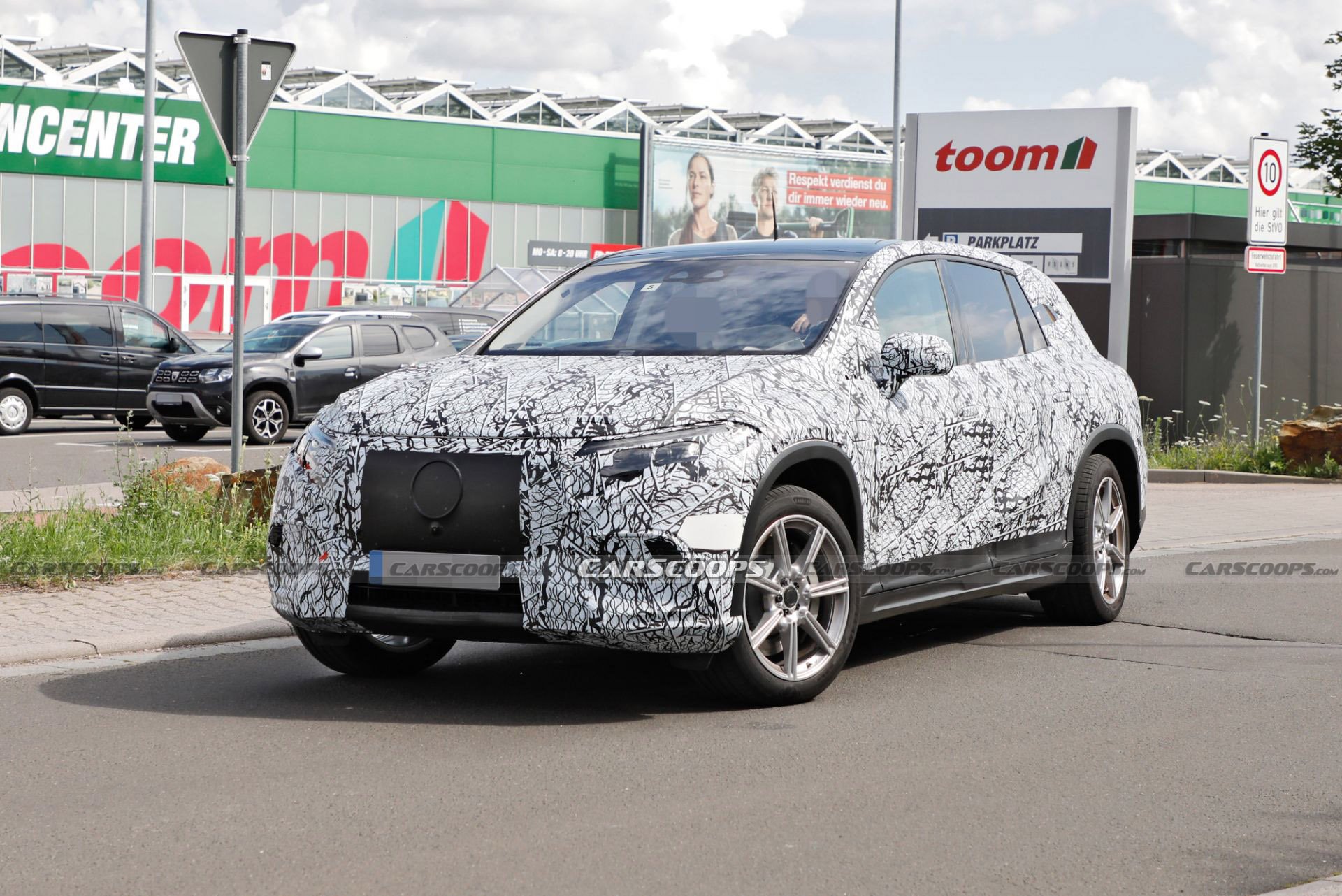Another element shown in the new spy pictures is the rear-wheel-steering, a feature that is available as a subscription feature in the EQS sedan. While the interior is covered, we expect it to share the Hyperscreen dashboard with its 8 CPUs, 24GB of RAM, and the latest MBUX software with its low-slung sibling.
