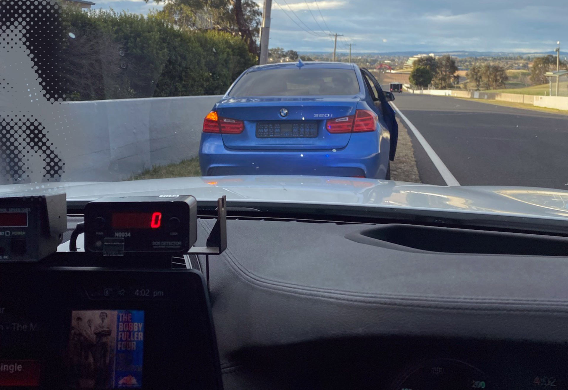 Over the weekend, police (in one of their fancy new BMW 5-Series patrol cars) were conducting mobile speed enforcement operations along the road when they nabbed the driver of a BMW 320i doing 119 km/h (74 mph) along one of the circuit’s straights.