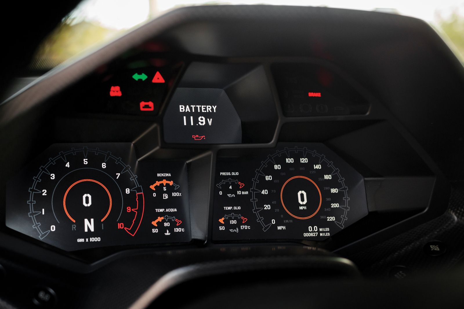 Looking at the Pagani Huayra’s dashboard is like watching one of those nature documentaries about jellyfish that glow in the dark. We’re not sure how easy those clocks are to read when you’re unleashing all 720 hp, but they look great.