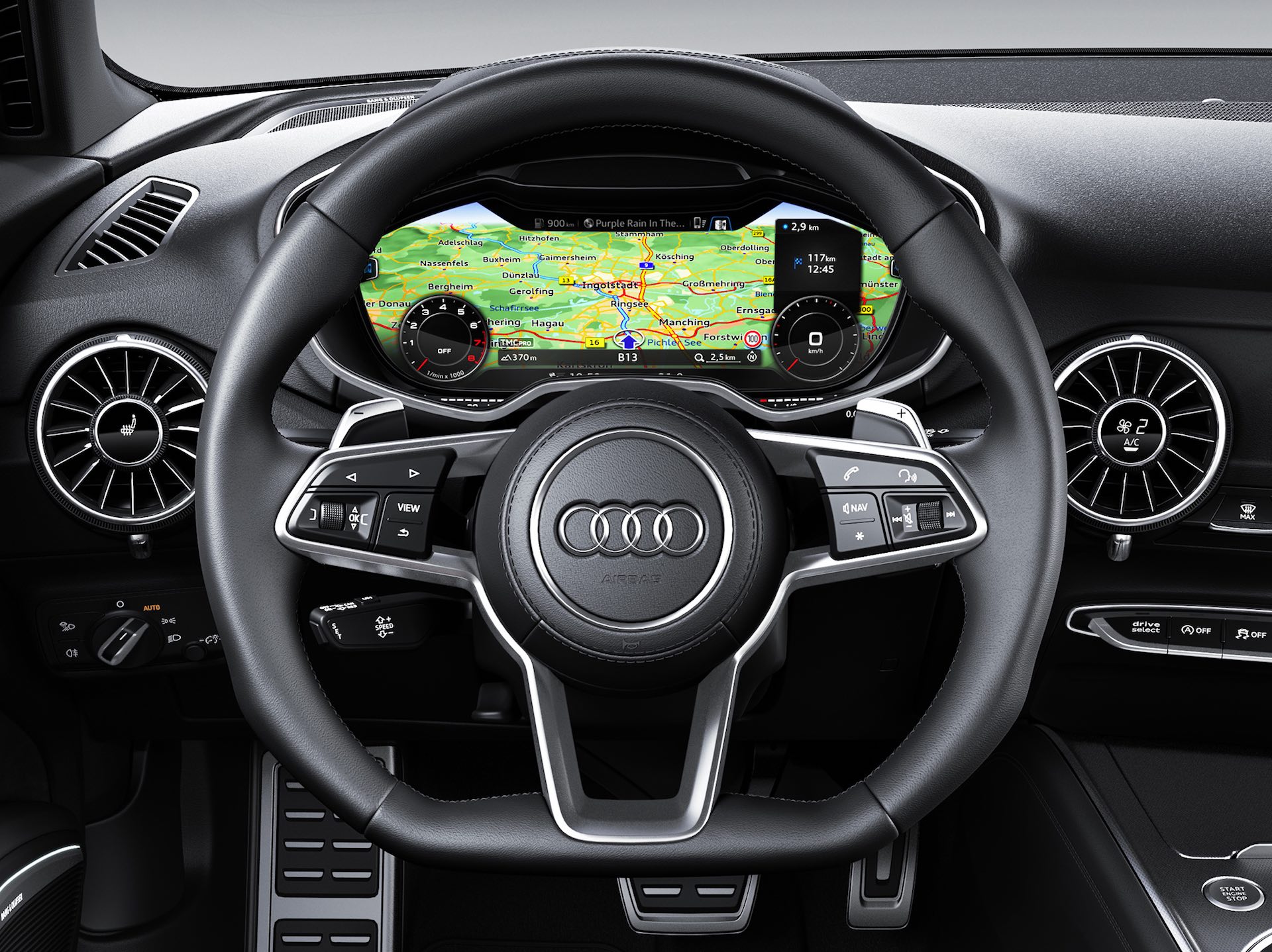 Audi was the first company to deliver the full-width configurable TFT instrument clusters that revolutionized dashboard design, starting with the TT coupe in 2014. The ability to turn your whole dash panel into a digital map was something Jaguar’s earlier TFT display should have done, but didn’t. And even when used to display plain old engine revs, it does it more clearly than most analogue clocks.