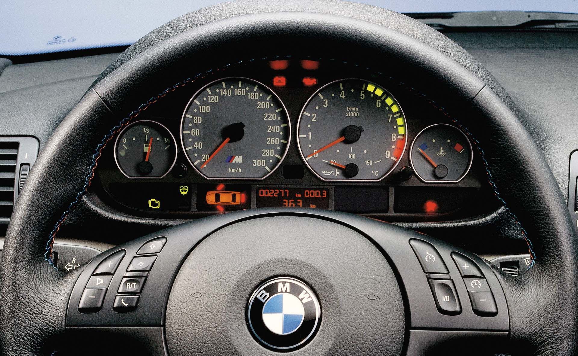 The E46 M3’s is a particular favorite, combining soft orange backlighting, smart chrome rims, orange needles and a series of lights on the rev counter that extinguish as the engine warms, letting you know when it’s safe to jump on the gas.