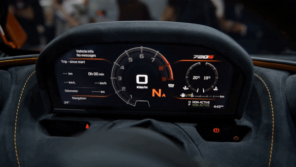 Flick a modern McLaren’s drive mode dial round to ‘track’ and the rectangular LCD panel flips down, swapping the circular rev counter for a horizontal strip design and dispensing with the extraneous stuff you don’t need to worry about when you’re banging out hot laps.