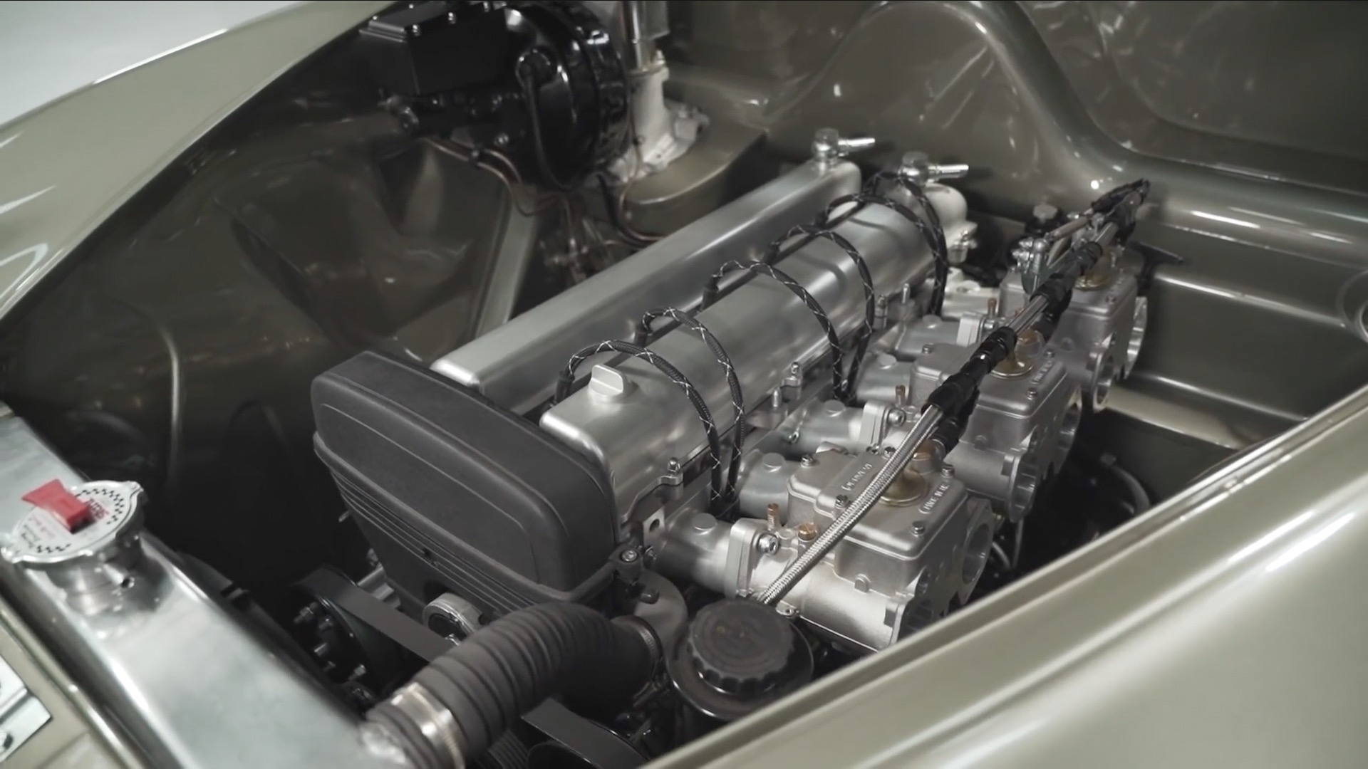 But of course the most interesting part of the build is that 2JZ swap. Retropower went for the Toyota motor because it’s an inline six, just like the original XK6 engine, meaning it looks right and fits between the inner wings.