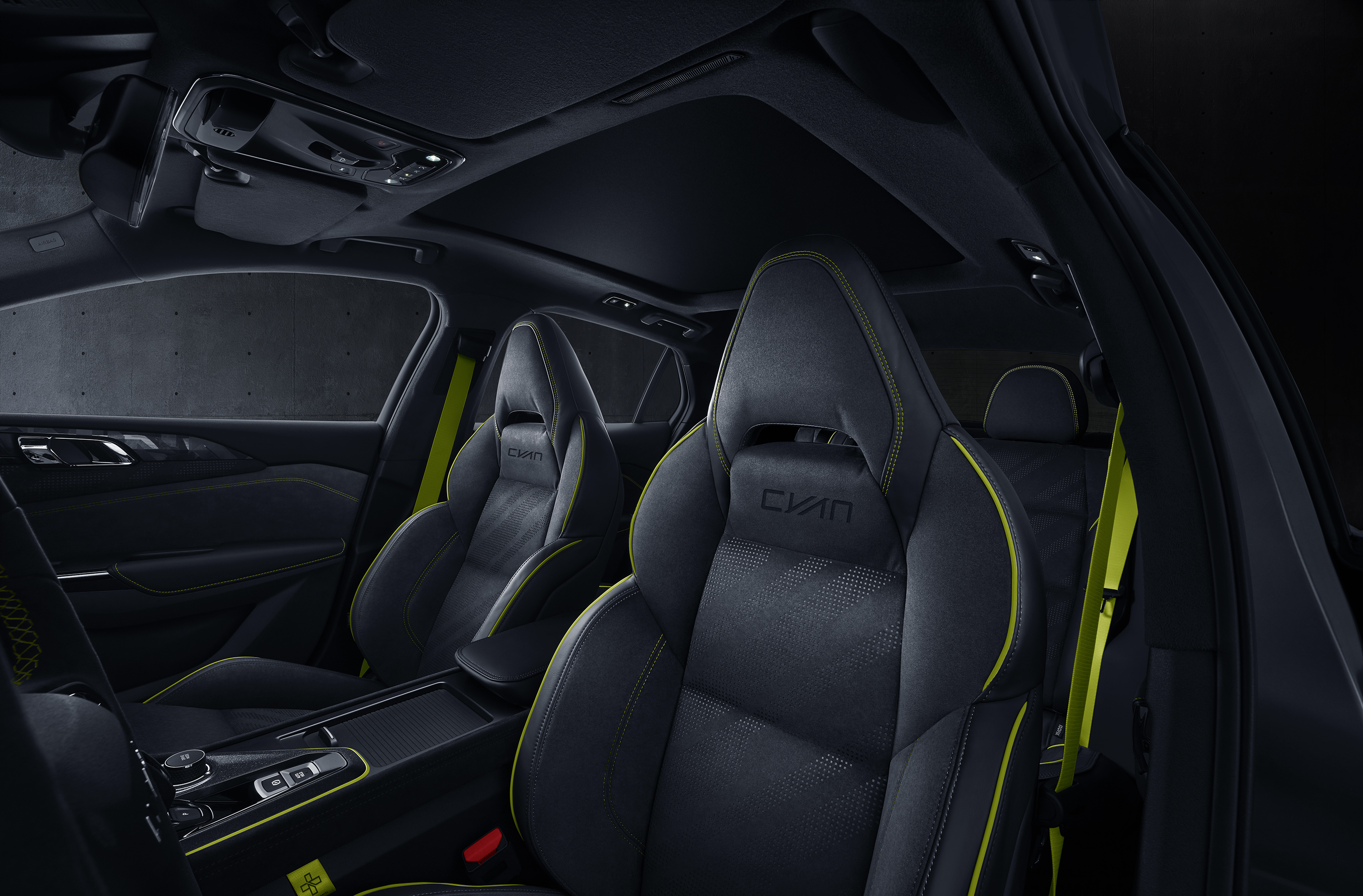 Besides the obviously large rear wing that can be adjusted to the desired angle, the special edition comes with unique diameter rims shod in Michelin Pilot Sport 4S tires, Akebono brakes, and adjustable Bilstein dampers. Inside, we find black upholstery combined with yellow accents, plus a set of beautiful Cyan-branded sports seats for the driver and the front passenger.
