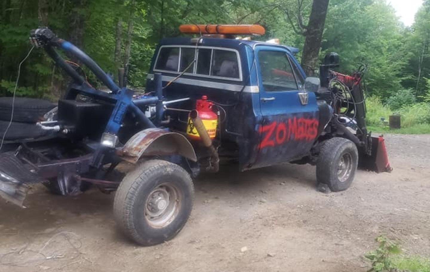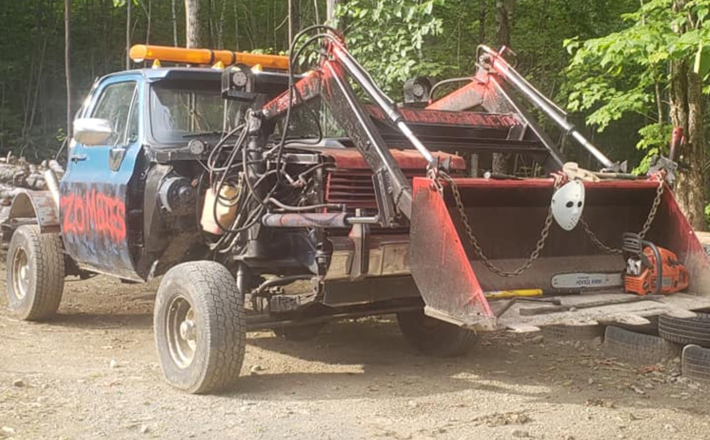Under the bonnet, there is a straight-piped V8 305 small block engine mated to a three-speed automatic transmission that sends power to all four wheels. At the back, where the bed used to be, there is now a steel arch with an integrated winch allowing the “Destructor Tructor” to pull logs and other stuff.