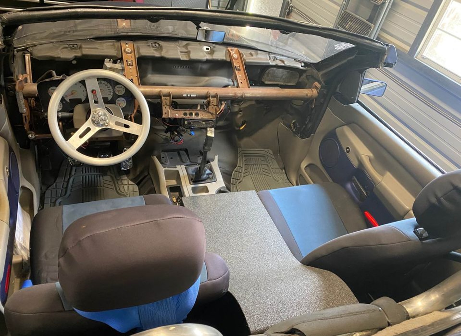 We found this weird car on a Facebook Marketplace ad where the owner (and builder) has it listed for $7,500. The vehicle, located in Spicewood, Texas, is based on a third-generation Dodge Ram 1500 from 2003. Under the hood, there is a 4.7-liter Magnum V8 mated to a five-speed manual which sends power to the rear wheels. The factory-spec engine produced 235 hp (175 kW / 238 PS) and 295 lb-ft (400 Nm) of torque, although we don’t know if this unit has received any modifications.