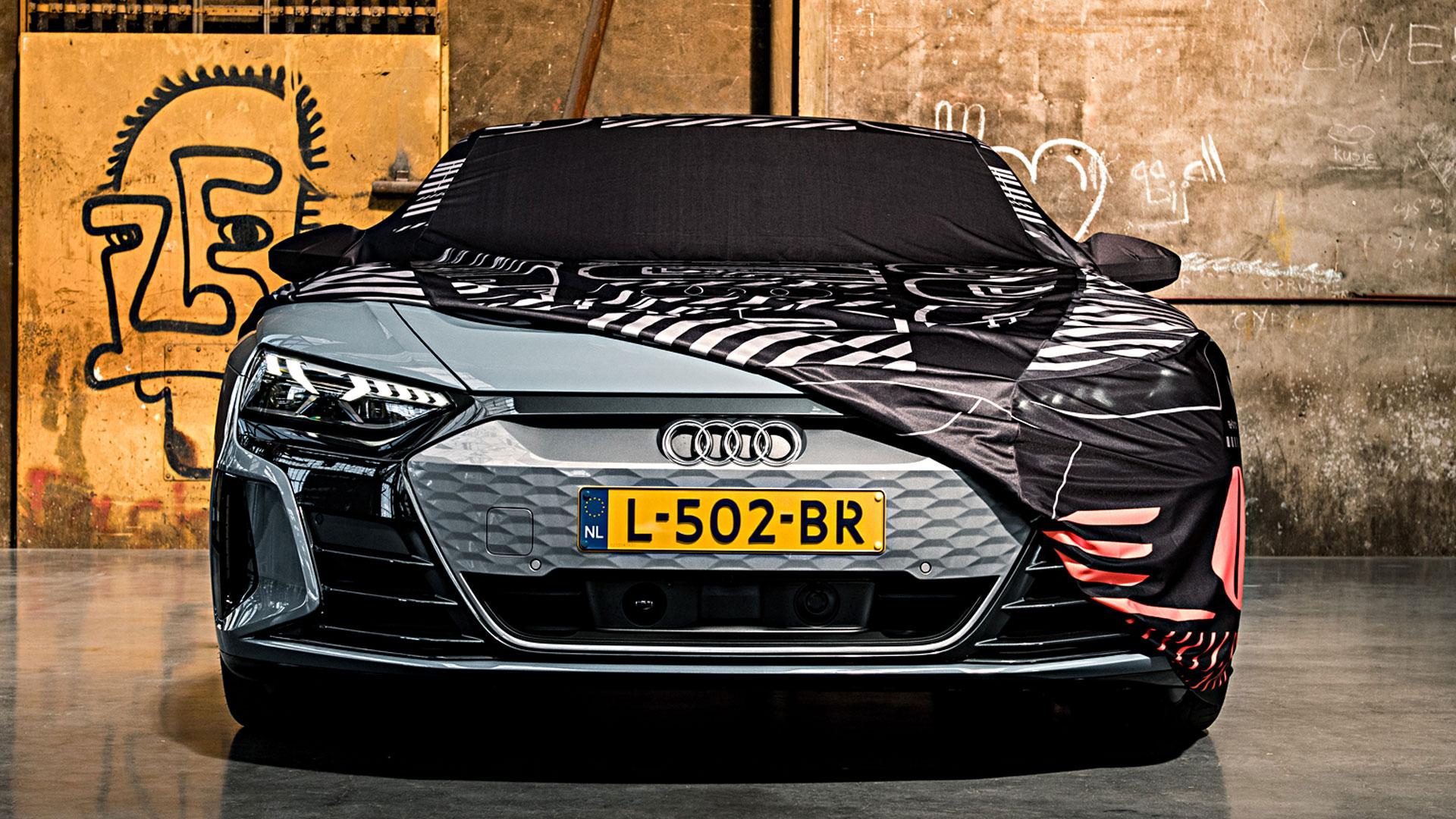 The cover wears an identical camouflage livery to that of the prototype, which featured multidirectional striping and a repeating circuit board-like pattern made out of the signature e-tron “e”.