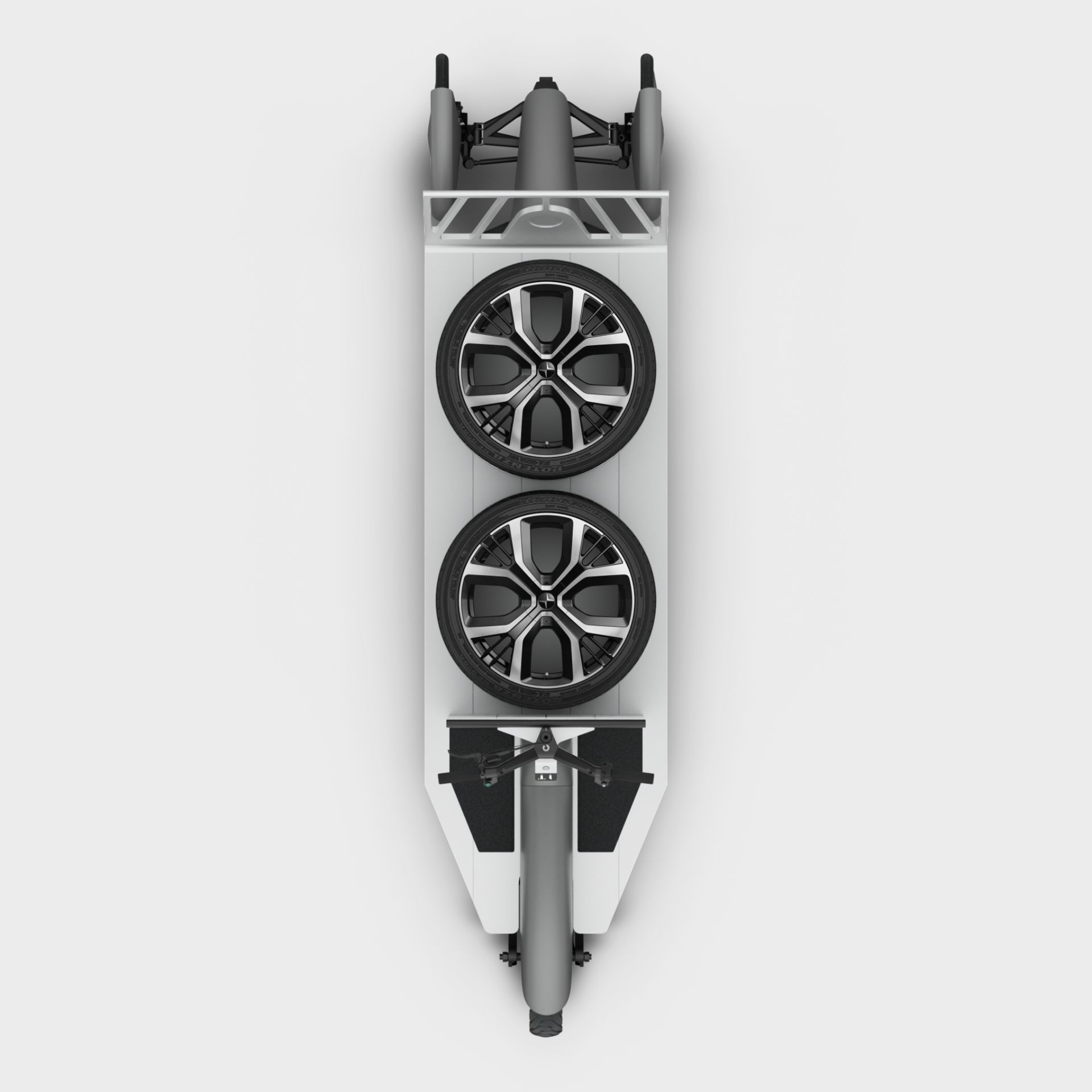 The three-wheel electric transporter is 750 mm (29.5 inches) wide which allows it to move freely on bicycle lanes while carrying loads of up to 180 kg (396.8 pounds). It is based on an aluminum chassis featuring a tilt mechanism for turns and comes with a damped rear swingarm and disc brakes. It also has lights, indicators (optional), and a horn, while being fully recyclable.