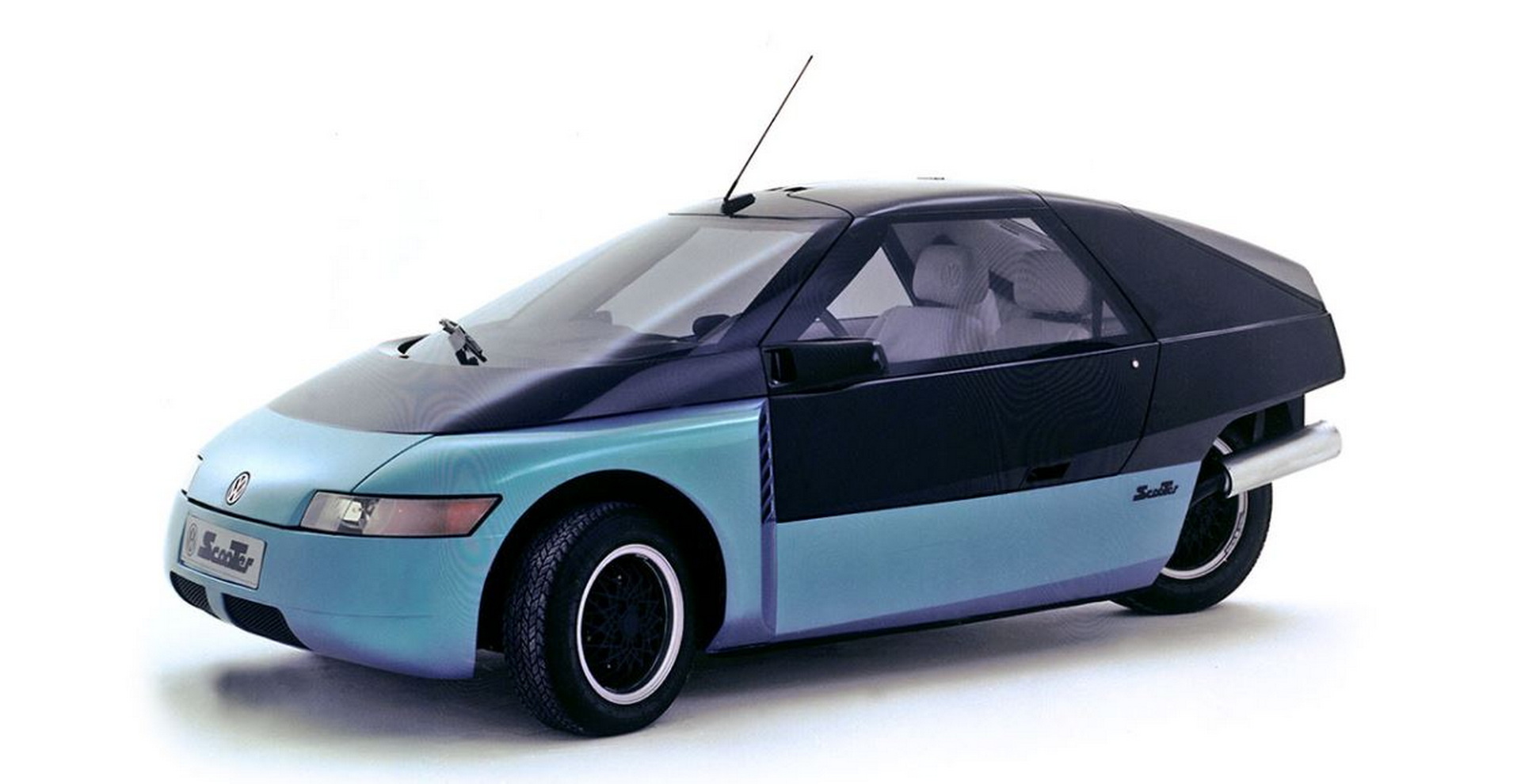 That same year, the VW Scooter concept was shown to the world as a nimble three-wheeler. The Scooter used a FWD platform, placing two wheels at the front and one at the back, and featured gullwing doors. Weighing in at just 635 kg, it needed just 40 hp going through a four-speed manual gearbox to get it moving.