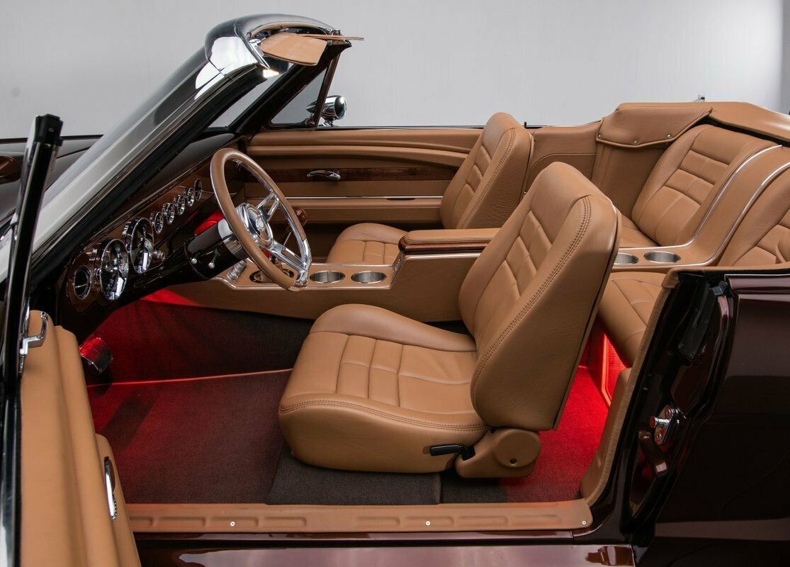 This Mustang Convertible has been restored and modified from the ground up thanks to CMX Customs by Vinnie in South Carolina. It immediately catches the eye thanks to a House Of Kolor Shimrin Kandy Root Beer paint finish that provides the pony car with a unique sparkle under direct light. Complementing the custom paint are chrome-finished wheels.