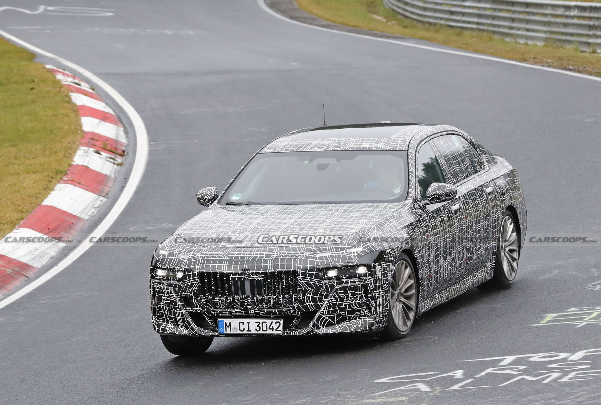 When the current BMW 7-Series debuted, it was met with a lot of controversy over its design. Now, our spy photographers have captured the next-gen one around the Nurburgring with less camo, and in addition to an even larger grille, it has what appear to be quad headlights.