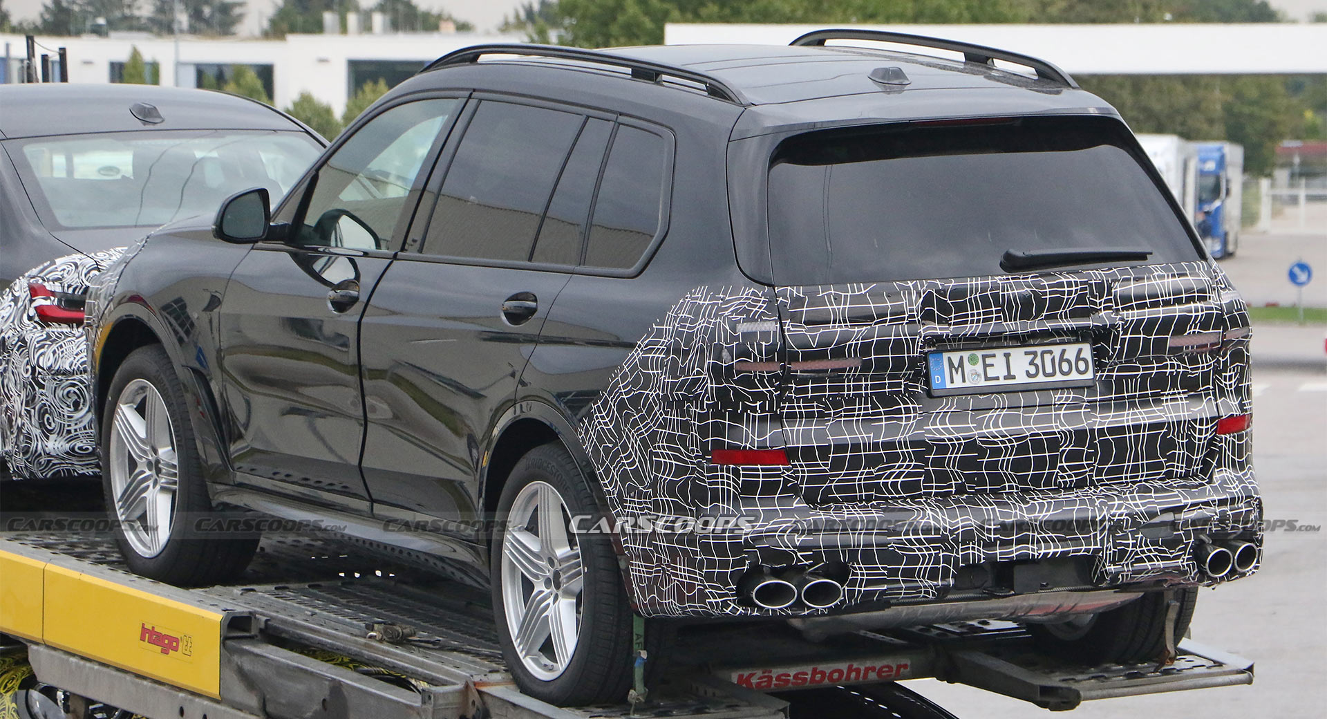 This particular Alpina XB7 prototype was spied on a back of a transporter truck alongside a number of other prototypes from BMW. It is easily identifiable as an Alpina due to its wheels, brakes, and quad tailpipes.