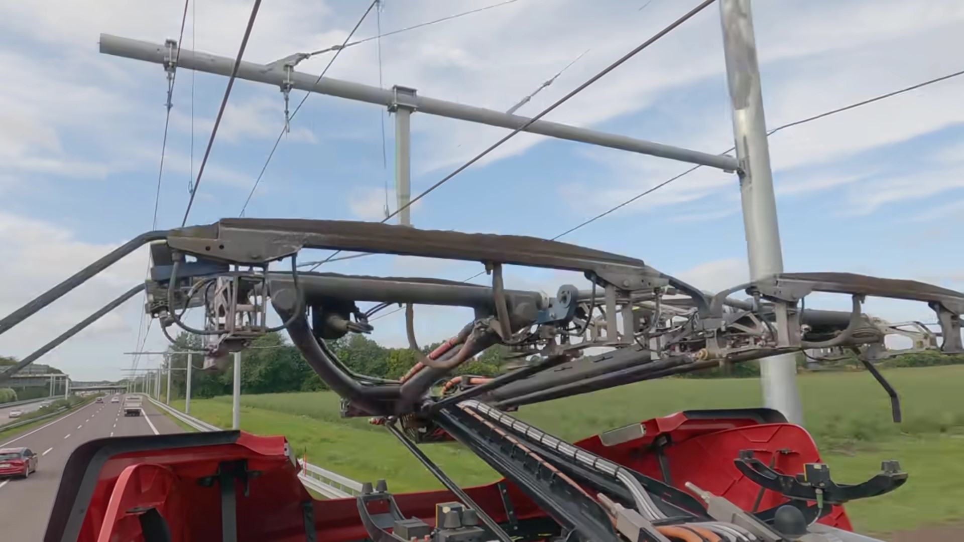 Since the connector just slides along, the trucks can still go onto internal power, be that electric or diesel, when they need to pass another vehicle or get off the highway entirely. But in scenarios, such as transport that gets containers frorm ports to warehouses, they could perform the majority of their trip on grid power, reducing the need for heavy batteries.