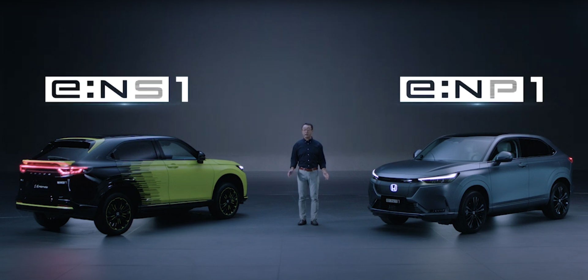 The first two models to arrive are known as the e:NS1 and e:NP1, and appear to be based on the new HR-V. Both are crossovers that feature a similar design that incorporates a fully enclosed grille, slender headlights and a minimalist interior.