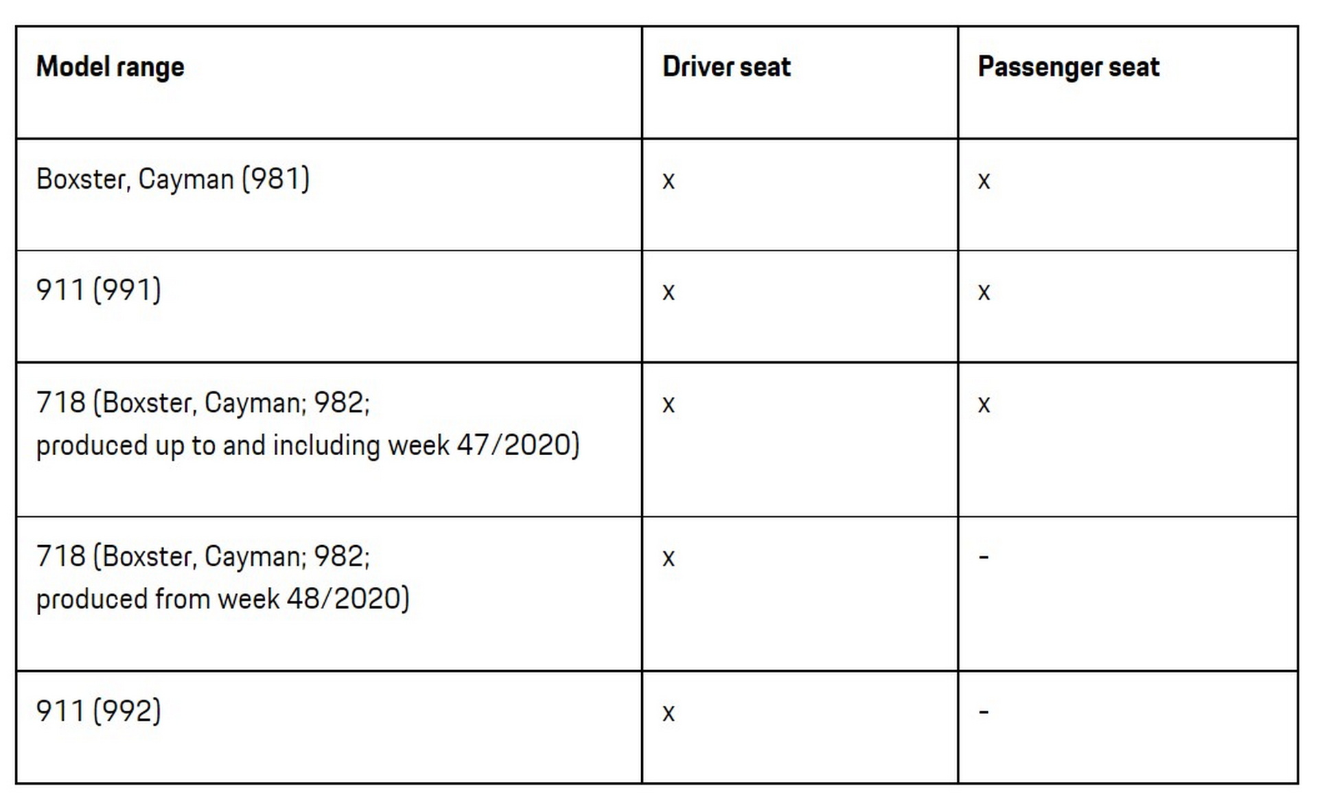 Customers will be able to retrofit the seat into some models that have already been delivered since the assembly process takes just a few minutes at a Porsche Center. Some vehicles will also be available with the new seat on the passenger side.