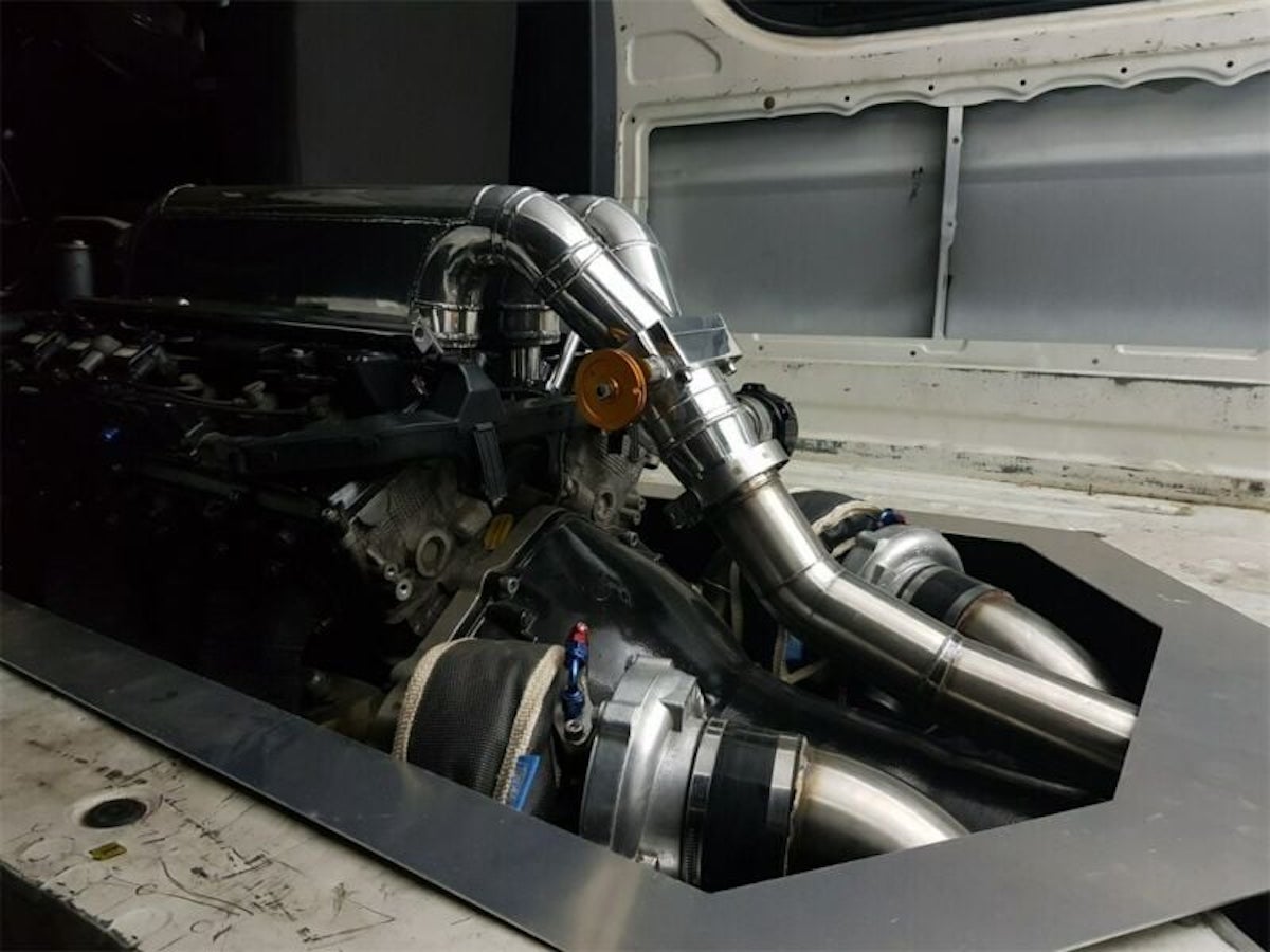 Vans are just motorized boxes for moving people and other boxes from one place to the next. Going fast and looking cool while doing it isn’t generally part of the remit. And mid-mounted V12s are definitely not on the menu.