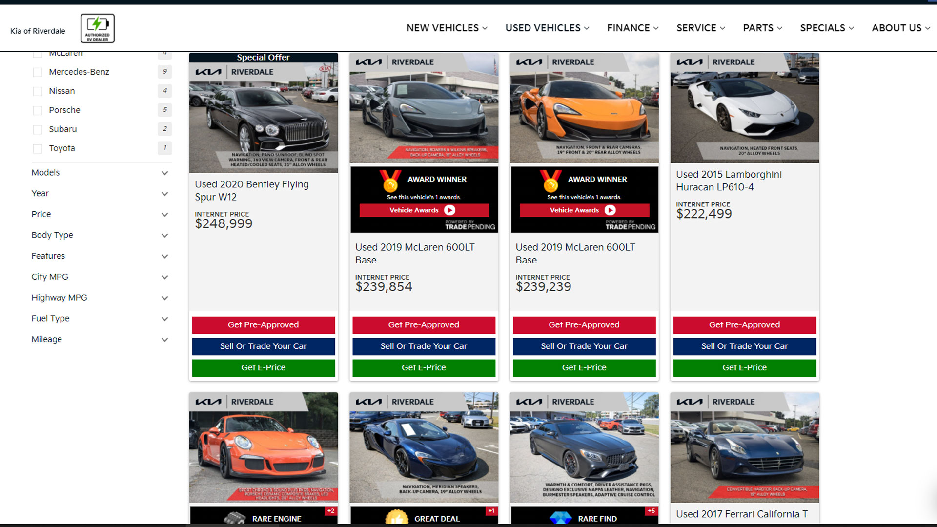 While that’s typically the case, Kia of Riverdale in New Jersey has an impressive collection of supercars.