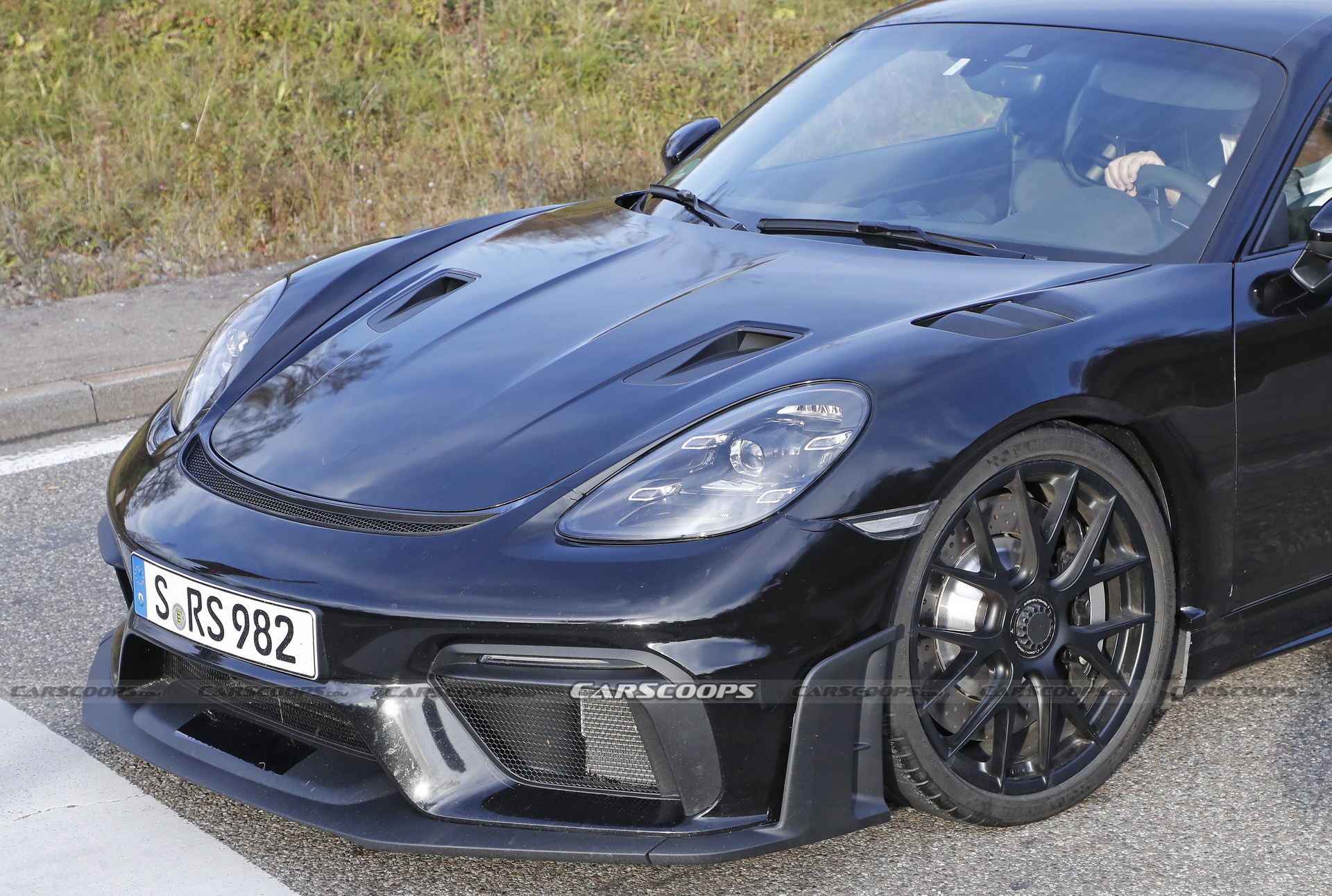 Porsche is getting ready to unveil the Cayman GT4 RS, which is scheduled for this month, but before that happens our spy photographers caught a GT4 RS prototype testing on public roads free of any camouflage.