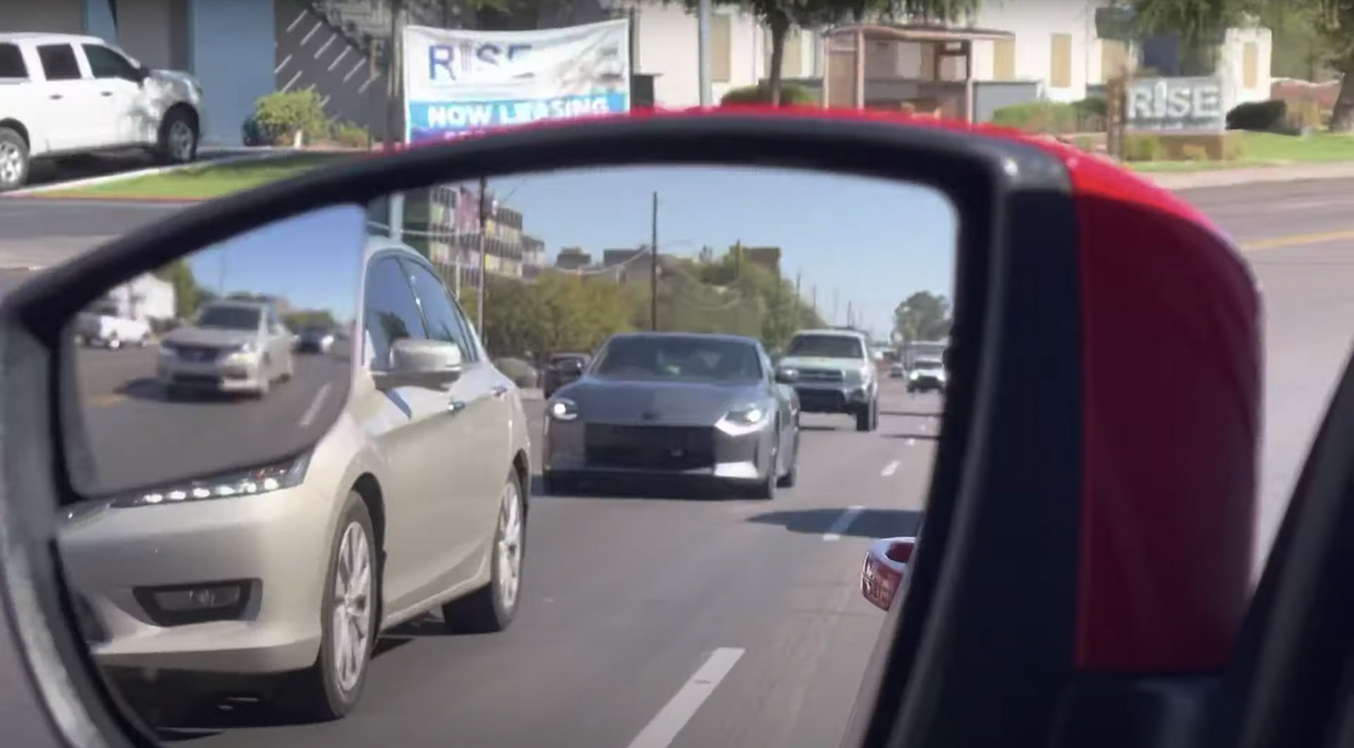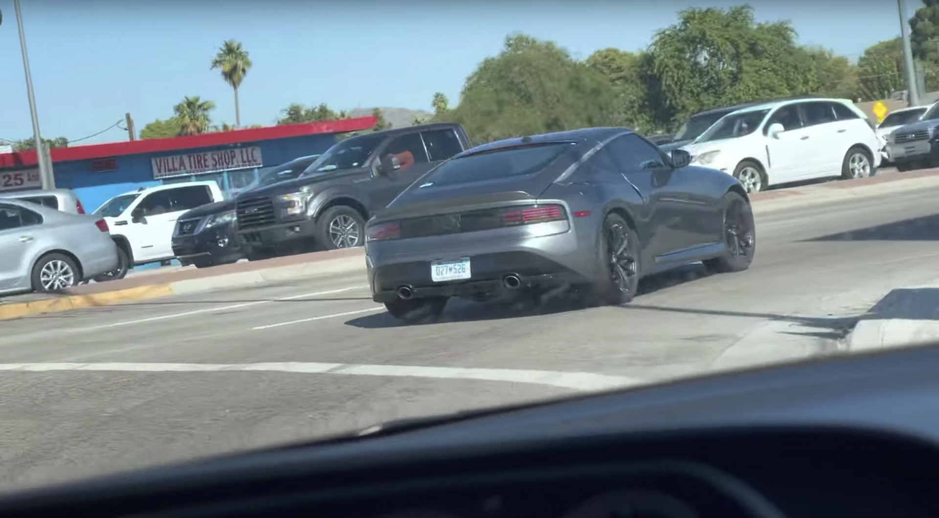 The car was spotted on the streets of Phoenix, Arizona in a subtle shade of Gun Metallic, complemented by a set of black wheels framing red brake calipers. But despite the Z’s daringly simplistic retro design, it actually manages to fit in quite well with the likes of regular traffic. That being said, just because it fits in doesn’t mean it’s invisible, as even in grey the car actually has quite a bit of presence compared to run-of-the-mill vehicles around it in the photos.