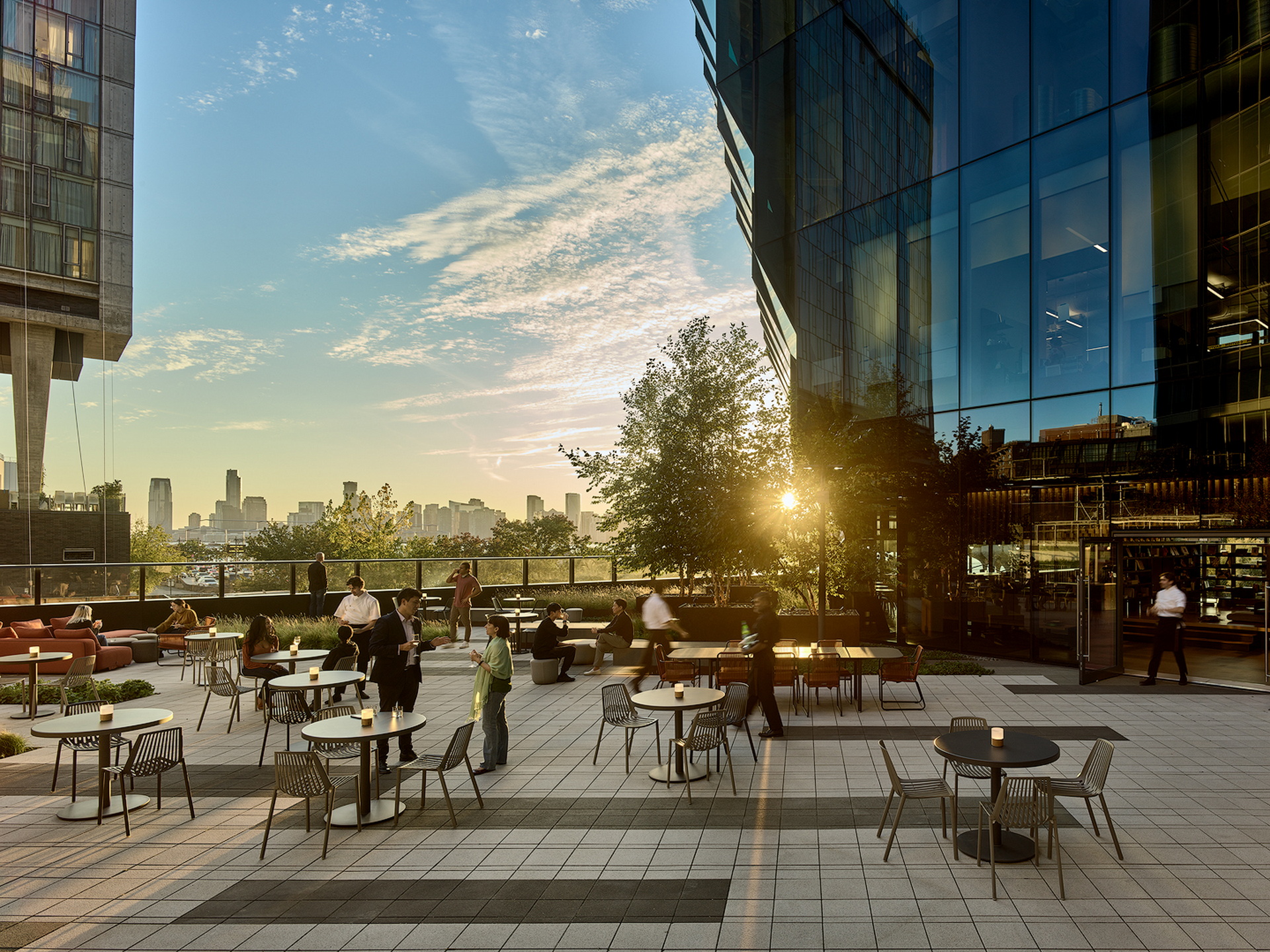 A 9,500 square foot (882 square meter) terrace garden, meanwhile, offers guests an unobstructed view of the High Line. It is surrounded by traditional Korean landscaping of white sand and gravel that is adorned with greenery.