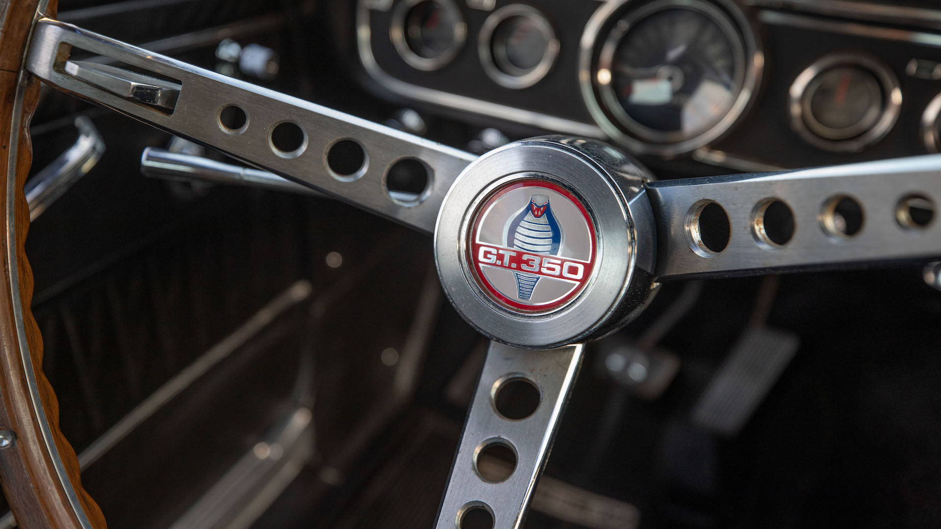 The original Shelby Mustang’s iconic, and much copied, nose-to-tail stripes were technically an option. But there were plenty of other clues, including the rear quarter window, rear fender- and hood scoops, and the Cobra emblem on the steering wheel and gas cap.