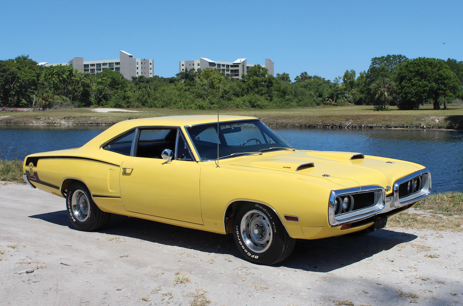 Arriving for 1968, Dodge’s answer to Plymouth’s more famous Road Runner used the same Chrysler B-body chassis, standard 335-hp, 383-cube (6.3-liter) V8, and also had its own cartoon character logo: a bee wearing a crash helmet, racing goggles, and sporting a set of exhaust headers poking over the top of wheels located where the legs should be. There were metal bee badges on the nose and tail, but you were more likely to spot the rear quarter stickers framed by a horizontal or vertical stripe, depending on year.