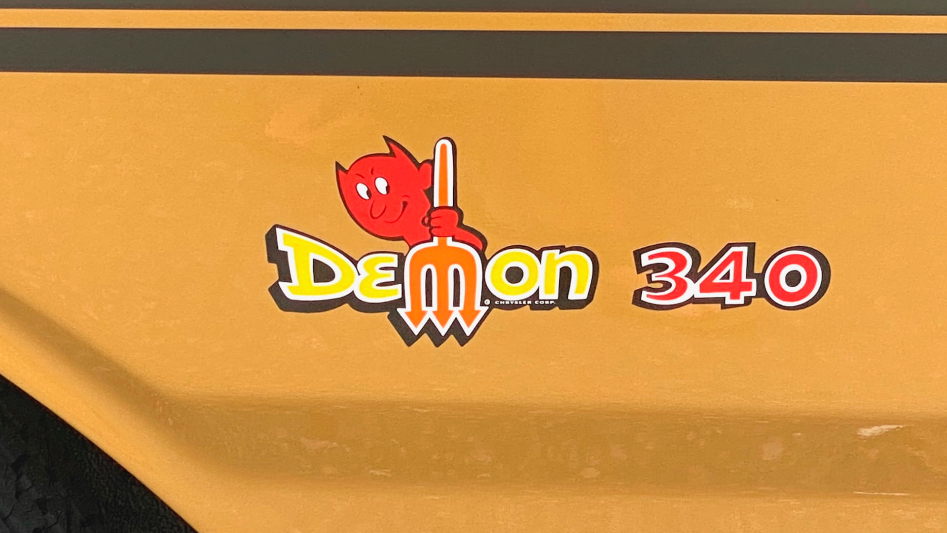 Proving that you didn’t need big-block power to have fun, the Chrysler twins employed punchy 340 cu-in. (5.6-liter) V8s that used their 275 hp outputs to scoot the Demon and Duster down the quarter mile in around 14.5 seconds. Dodge’s mischievous Demon logo looks about as scary as a fairy next to the Demon graphic on the side of a modern Challenger Demon, but the way the pitchfork is integrated into the lettering is fun.