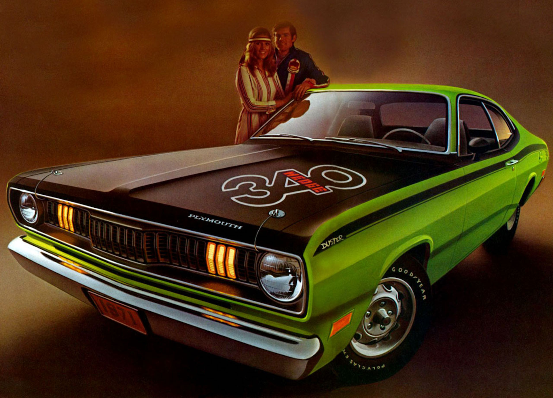 Plymouth, meanwhile, played it more serious with the Duster, sticking to large “340” graphics on the rear quarters, although the optional black hood bearing the legend “340 Wedge” certainly wasn’t lacking in attitude.