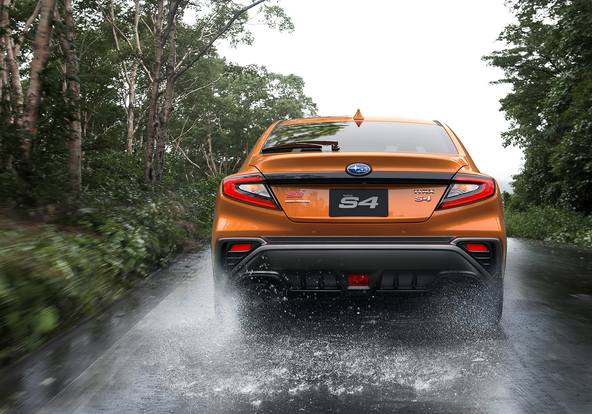 Visually, the WRX S4 can be distinguished by the different headlight graphics (no reflectors), the S4 badge on the tailgate, and the red STI badges on the grille and tailgate of the STI Sport R trim levels. The Japanese specification also gets a rear wiper despite being a four-door sedan.