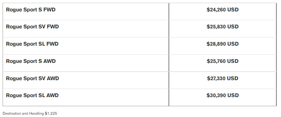That’s $100 more than last year’s model, but it’s worth noting the destination and handling fee has climbed from $1,175 to $1,225. As a result, customers will need to shell out an extra $150 to purchase the latest Rogue Sport.