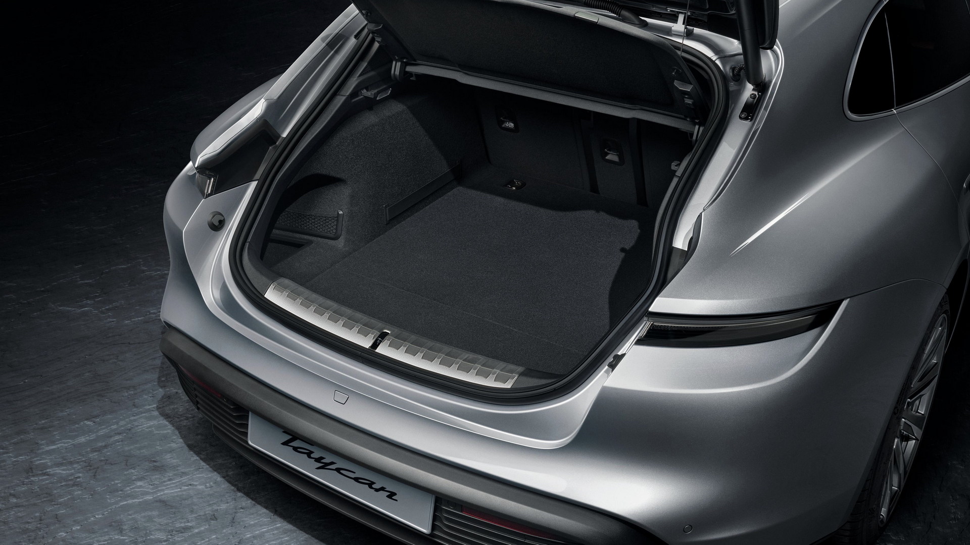All Sport Turismos retain the estate-like five-door hatchback silhouette, allowing for a more spacious cabin. Inside, the headroom has been increased by +9 mm (0.4 inches) for the driver and front passenger, and by +45 mm (+1.8 inches) for the rear passengers. Depending on the equipment, the luggage space has a capacity of up to 446 lt (18.8 cubic feet) in its five-seat configuration, reaching up to 1,212 lt (42.8 cubic feet) with the rear seats folded, plus the 84-liter (3 cubic feet) frunk. The trunk opening is also larger than in the regular Taycan.