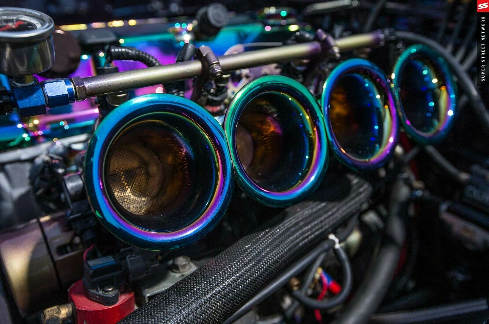 The S2000’s 2.2-liter naturally-aspirated four-cylinder has also been modified and includes a Neo Chrome valve cover, 48 mm independent throttle bodies, and engine mounts, oil cap, coil pack cover, and a radiator cap with a Neo Chrome finish. The car sports the same six-speed manual as an S2000 but pairs it with a limited-slip differential from a Toyota AE86.
