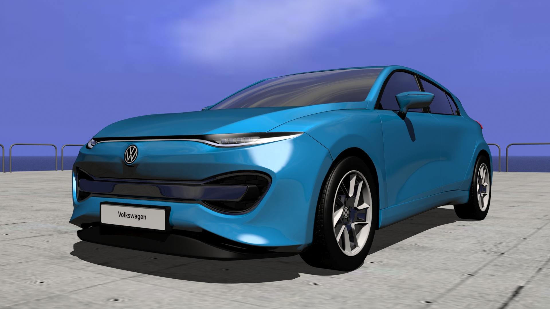 Starting with the Golf, it looks dramatically different than the current model and sports a unique shape with a surprisingly long hood. It also rocks slim headlights with an LED light bar, a small front grille, and a simple pair of taillights.