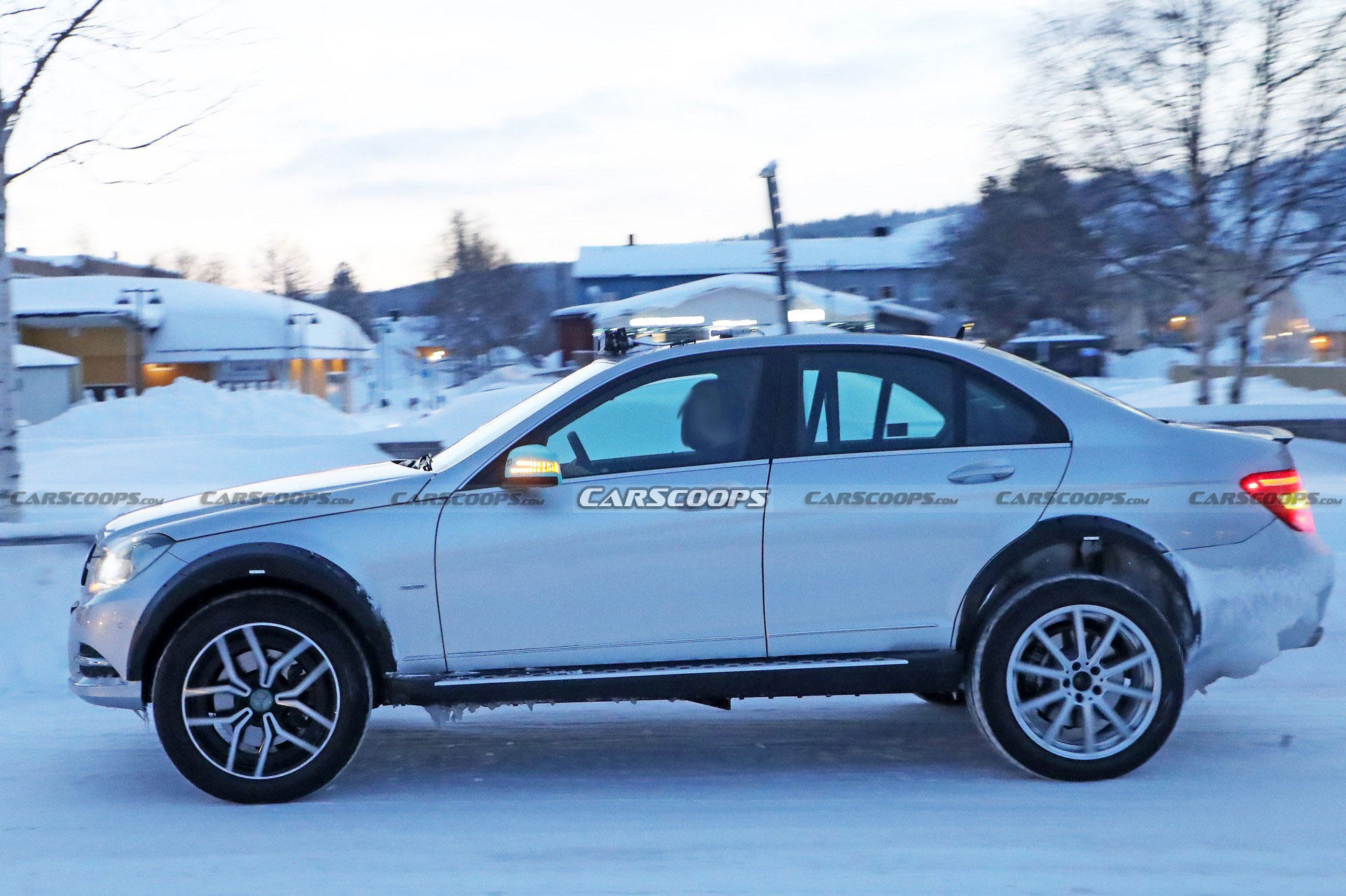 As you can see, the mystery model wears a third-generation C-Class body that has been outfitted with extended fender flares and chunky side skirts. They’re joined by a roll cage and a roof-mounted light bar.
