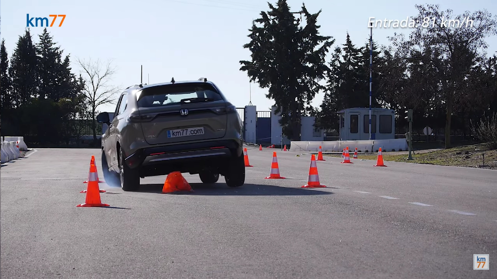 When the driver really pushes the HR-V, entering the maneuver at 81 km/h (50.3 mph), it understeers wide. Although that prevents it from completing the test at a higher speed, it is at least stable and doesn’t loop like the Skoda Enyaq iV electric SUV.