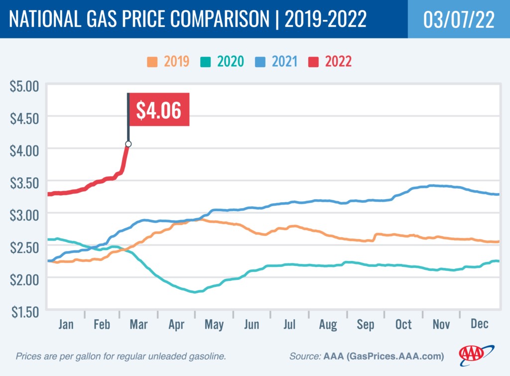 If you’ve filled up recently, you’ve undoubtedly experienced pain at the pump as AAA is reporting the national average for a gallon of gasoline has soared to $4.06.