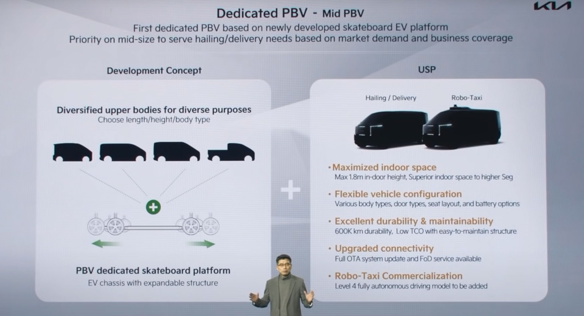 A multitude of other PBVs will be launched by Kia. Among these will be a medium-sized model offered with various body configurations and Level 4 autonomous driving technology. A ‘Micro PBV’ is also in the works and will be dedicated to on-demand food and grocery delivery services. It too will have Level 4 autonomous capabilities. A larger PBV will also be launched and suited to a variety of different use cases, including as a delivery van, people mover, and a refrigerated van for various goods.