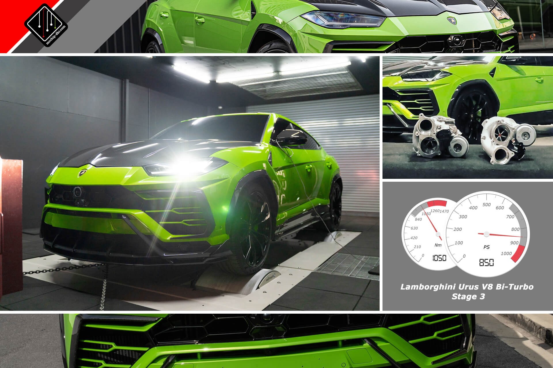 McChip refers to this series of upgrades as its ‘Stage 3’ package. It includes upgraded turbochargers, bespoke downpipes with 200-cell sport catalysts, and an engine tune that allows it to pump out an extra 197 hp and 148 lb-ft (200 Nm) of torque, meaning this bright green Urus is now churning out 838 hp and 774 lb-ft (1,050 Nm).