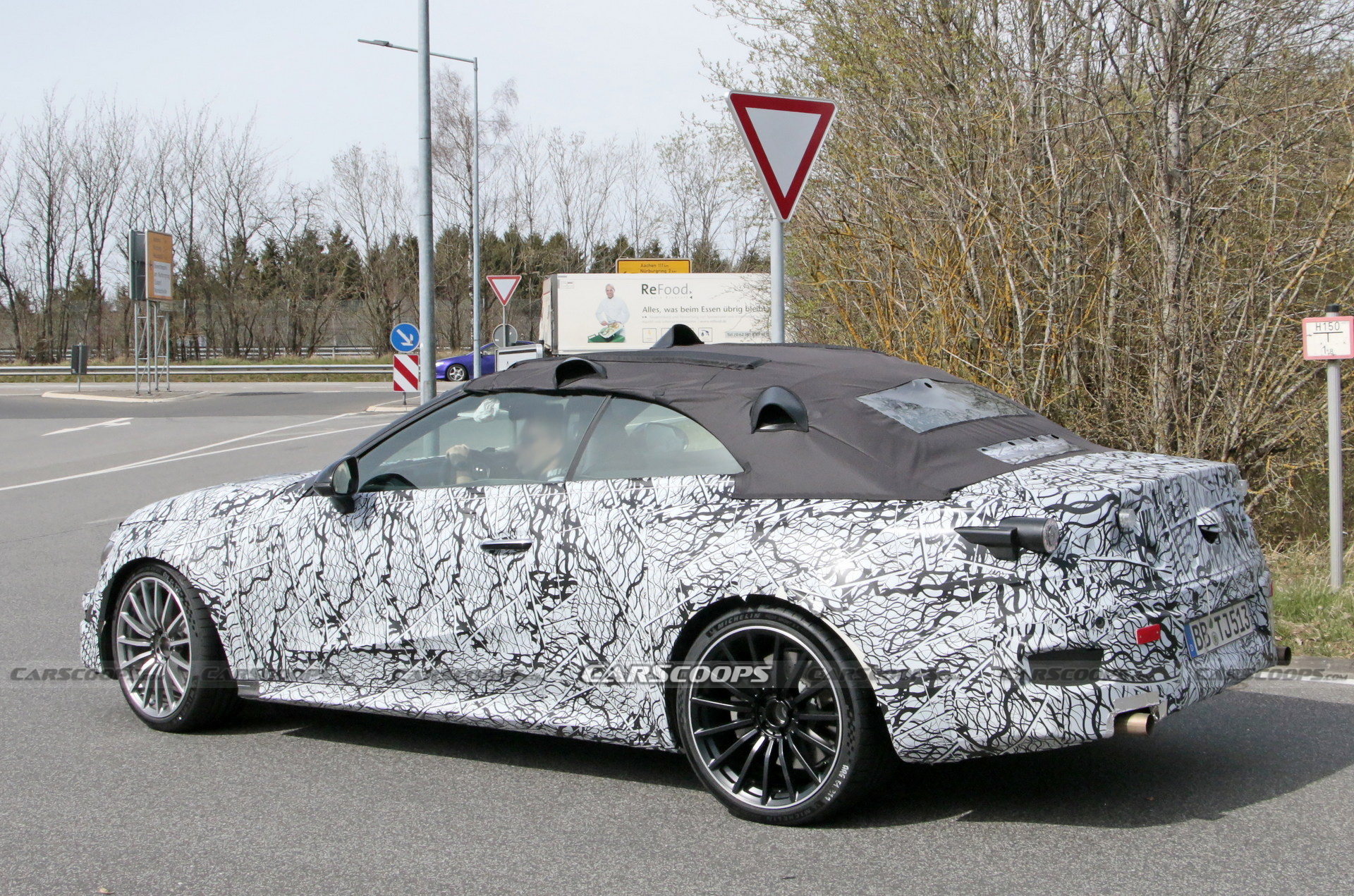 The Mercedes-AMG CLE Convertible has been spied once more showing off the two-door silhouette with a soft top and performance-focused upgrades. This time, a camouflaged prototype was caught by our spy photographers at the Nürburgring, months away from its debut that is expected before the end of the year.