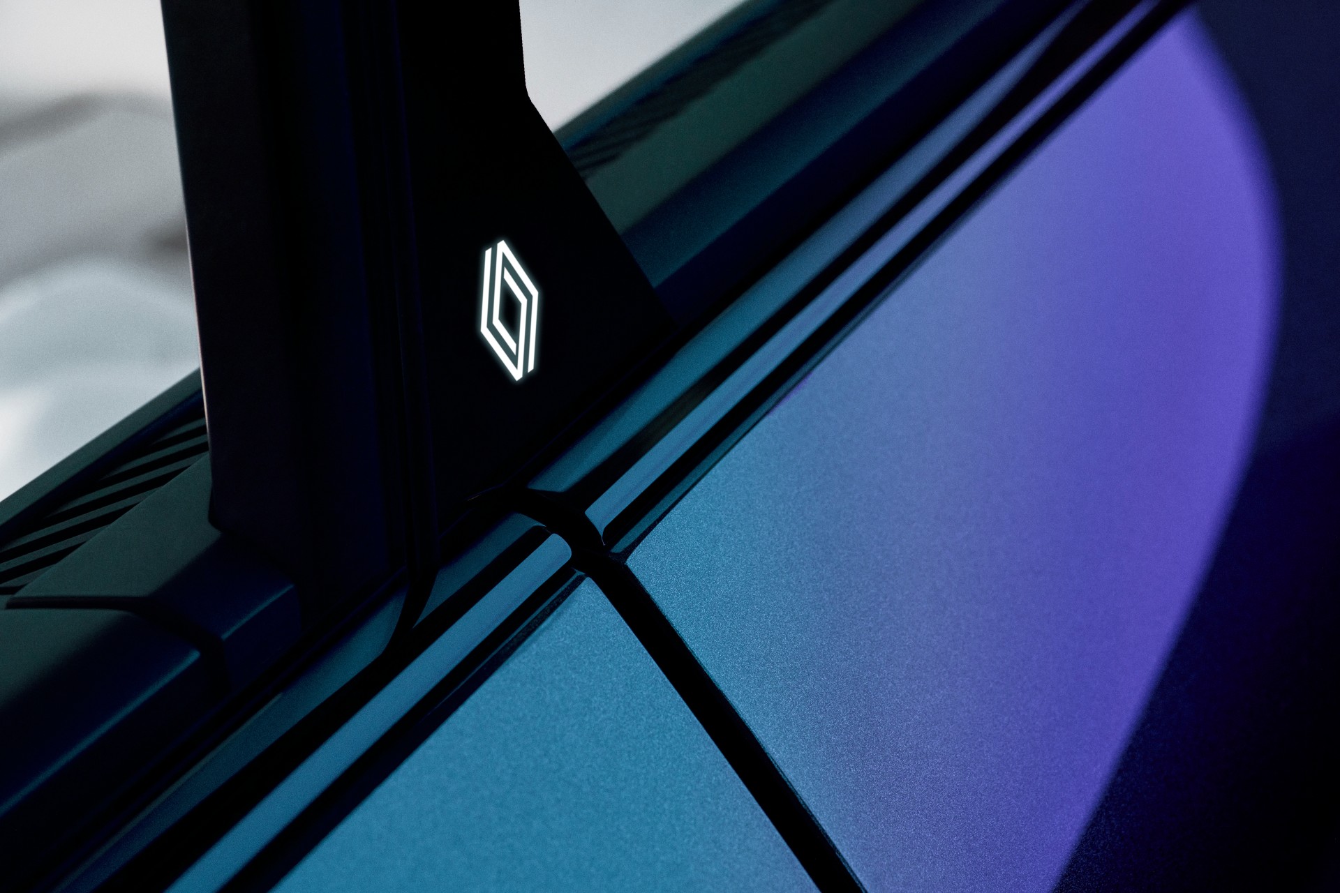 While the first teaser was somehow revealing, the new photo posted by Renault only shows what appears to be a small portion of the B-pillar. We can see an illuminated Renault emblem and the bespoke color-shifting paint combining blue, green, and purple shades. Those elements are still not enough to guess the bodystyle type of the concept which could be a hatchback like the Renault 5 supermini or a crossover/SUV like the Megane E-Tech.