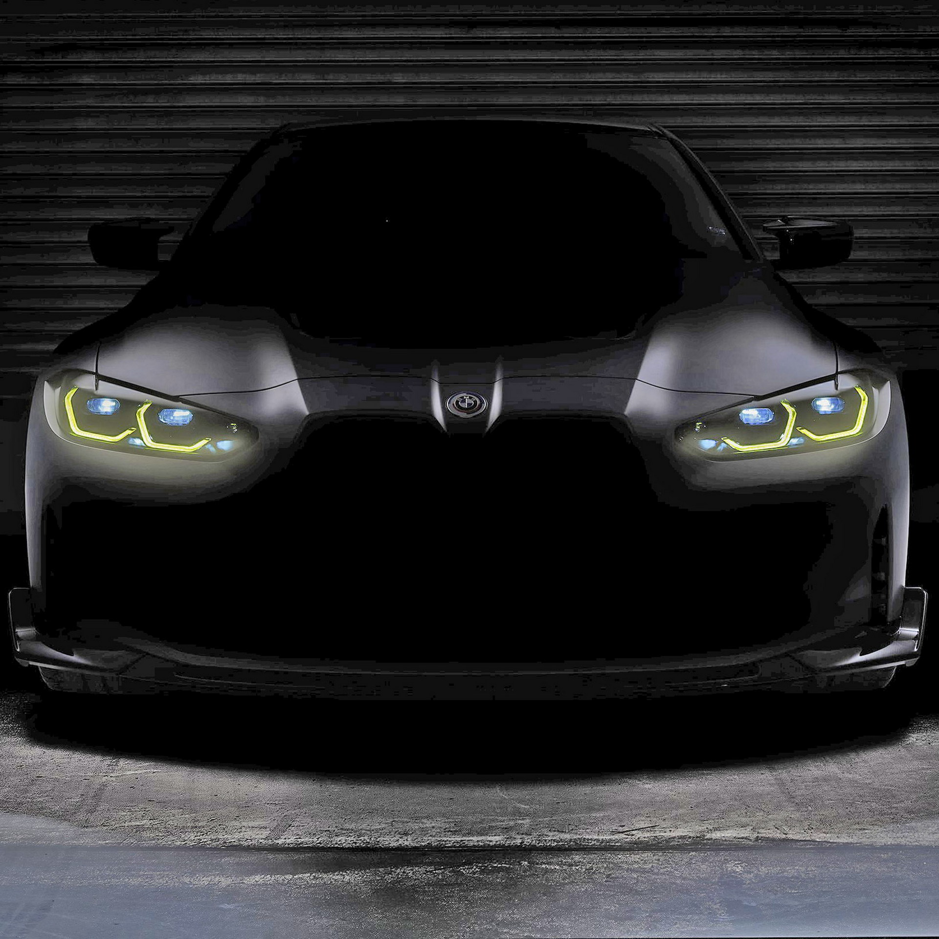 Moving on to the front end, we can see that the M4 CSL will feature a set of black bonnet stripes, plus yellow-colored LEDs in a similar fashion to the BMW M5 CS. It almost feels like BMW knew we would try to brighten up the teasers and covered the car’s face with black, however, they left out the prominent splitter which is supposedly made of carbon fiber. Another special feature will be the redesigned grille with Y-shaped motifs, feeding more air into the modified engine.