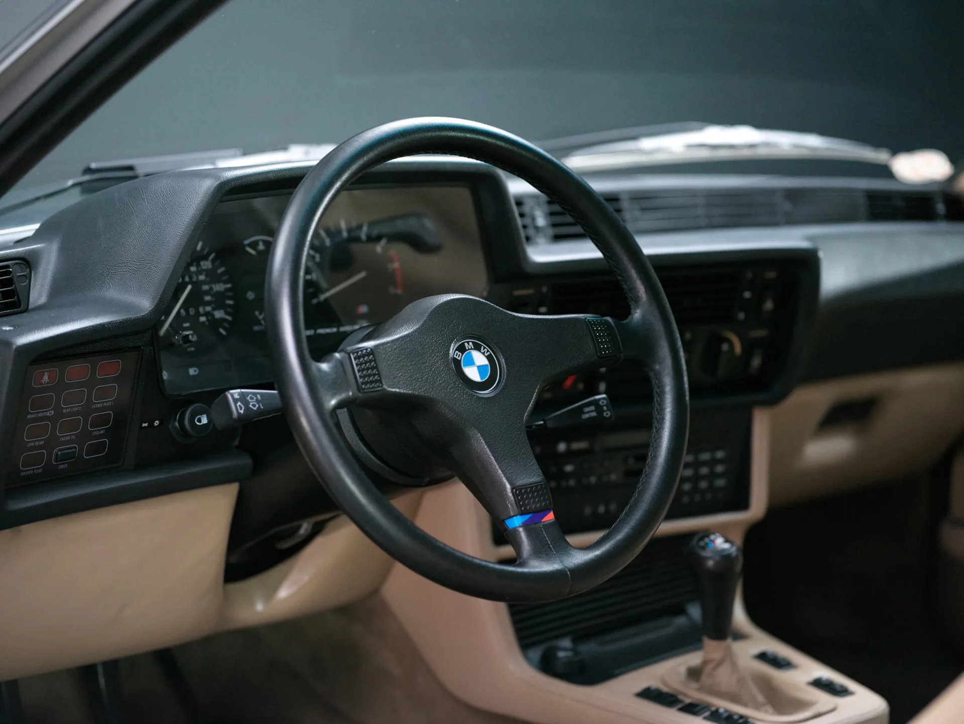 Inside the M6, the seats are trimmed in a fabulous shade of tan leather and there’s an M-Tech I steering wheel. There aren’t many toys to play with, which is unsurprising given the car’s age. Nevertheless, there’s air conditioning, power windows, an onboard computer, and a factory-installed cassette stereo.
