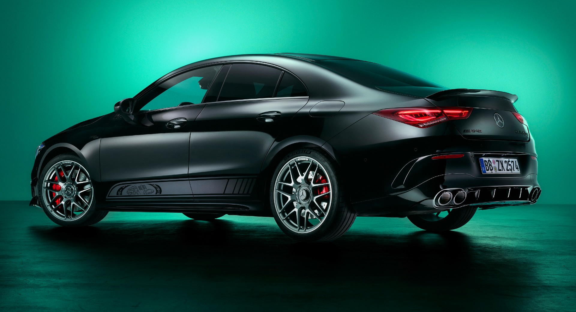The most powerful variants of Mercedes’ compact range are a fitting base for the special edition. The models can be ordered in either Cosmos black metallic or Digital white metallic exterior paint, combined with decals on the profile. The bodykit looks more aggressive thanks to the addition of the AMG Aerodynamics package which includes a prominent splitter, cannards, a rear wing, and a diffuser blade.